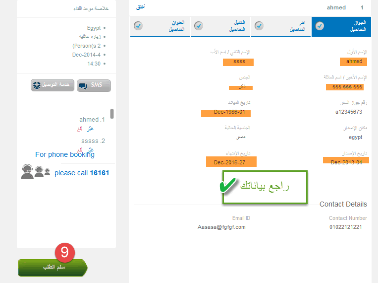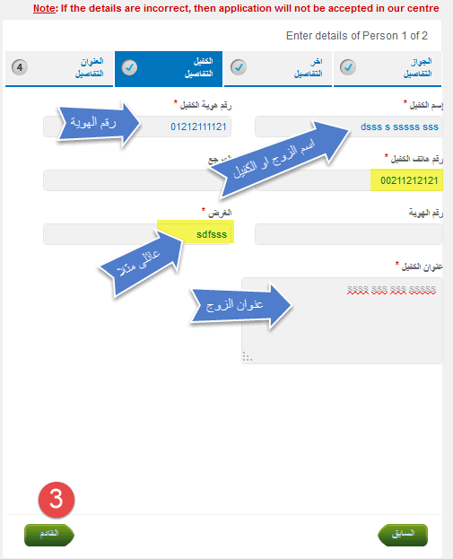 ظهور الجمل الحمراء تحت الخانات تدل على عدم التسجيل الصحيح فى الخانة